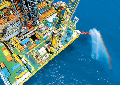 圖為南海神狐海域正在從水深1266米海底以下203-277米試采“可燃冰”的作業(yè)平臺(tái)?! 」′h攝(人民視覺)