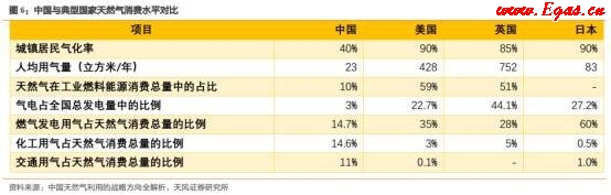 居民天然氣消費(fèi)擁有很大的潛力,因?yàn)槟壳爸挥行〔糠殖鞘芯用窨墒褂锰烊粴?。根?jù)國(guó)家統(tǒng)計(jì)局?jǐn)?shù)據(jù),中國(guó)不到20%的人口可使用管道天然氣,而美國(guó)的這一數(shù)字達(dá)58%。隨著可支配收入和生活水平的提高,越來(lái)越多的居民出于便利性和清潔性而傾向于使用管道天然氣。
