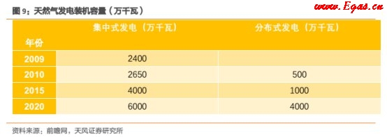 據(jù)中電聯(lián)的《"十三五"天然氣發(fā)電需求預(yù)測(cè)》,預(yù)計(jì)2020年我國(guó)天然氣發(fā)電規(guī)模1億千瓦,其中分布式4000萬(wàn)千瓦。當(dāng)前我國(guó)天然氣分布式能源總裝機(jī)容量為500萬(wàn)千瓦,缺口很大。假設(shè)9F聯(lián)合循環(huán)機(jī)組設(shè)備購(gòu)置加安裝的平均費(fèi)用為2500元每千瓦,到2020年,集中式天然氣發(fā)電新增市場(chǎng)規(guī)模將達(dá)500億元。假設(shè)天然氣分布式發(fā)電設(shè)備購(gòu)置及安裝費(fèi)用為3500元每千瓦,到2020年,分布式天然氣發(fā)電設(shè)備新增市場(chǎng)規(guī)模將超過(guò)1000億元。