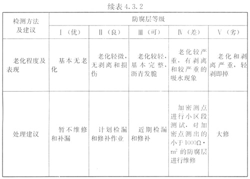 4.3.2防腐層絕緣性能評(píng)價(jià)應(yīng)符合下列規(guī)定: