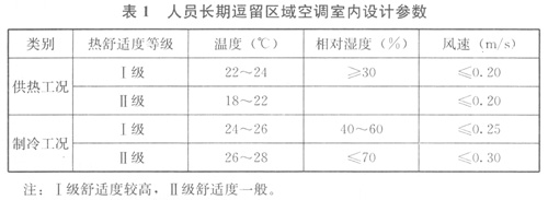 1人員長期逗留區(qū)域空調(diào)室內(nèi)設(shè)計(jì)參數(shù)應(yīng)符合表1的規(guī)定: