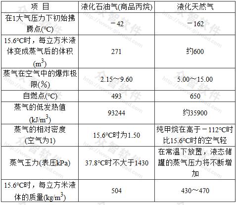 1 液化天然氣是以甲烷為主要組分的烴類混合物,從液化石油氣(LPG)與液化天然氣的主要特性對比(見表50)中可見,LNG的自燃點、爆炸極限均比LPG高;當(dāng)高于-112℃時,LNG蒸氣比空氣輕,易于向高處擴散;而LPG蒸氣比空氣重,易于在低處集聚而引發(fā)事故;以上特點使LNG在運輸、儲存和使用上比LPG要安全些。
