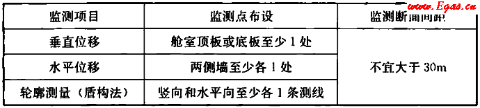 4.4.9 綜合管廊結(jié)構(gòu)變形監(jiān)測(cè)時(shí)間和周期應(yīng)根據(jù)埋深、結(jié)構(gòu)形式、施工方法、變形特征、變形速率、觀測(cè)精度和工程地質(zhì)條件等因素綜合確定;監(jiān)測(cè)期間,可根據(jù)變形量的變化情況適當(dāng)調(diào)整。在綜合管廊運(yùn)營(yíng)初期,第1年宜每季度監(jiān)測(cè)1次,第2年宜每半年監(jiān)測(cè)1次,當(dāng)發(fā)現(xiàn)變形顯著或變形速率明顯增大時(shí),應(yīng)增加觀測(cè)次數(shù)或持續(xù)觀測(cè)。