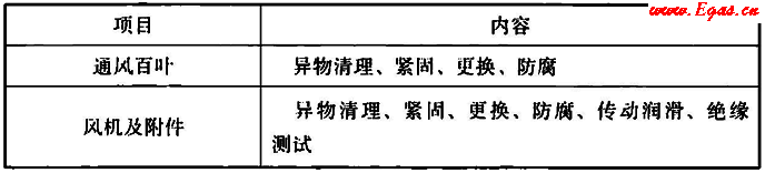 表5.3.4 通風系統(tǒng)維護項目和內(nèi)容