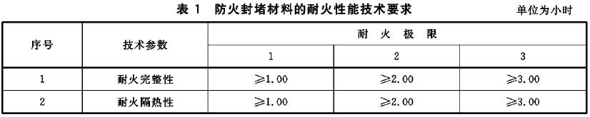 5.2.2 防火封堵材料的耐火性能應(yīng)符合表1的規(guī)定。