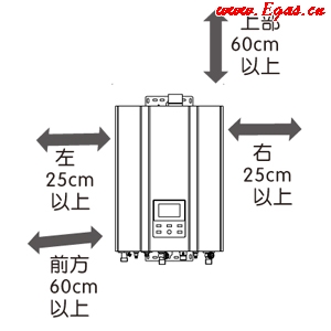 • ② 熱水器切勿安裝在浴室內(nèi)(平衡機(jī)除外),在車輛、船只上,切勿將熱水器暗裝。