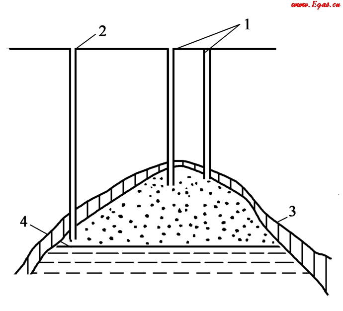 1—生產(chǎn)井;2—檢查(控制)井;3—不透氣覆蓋層;4—水