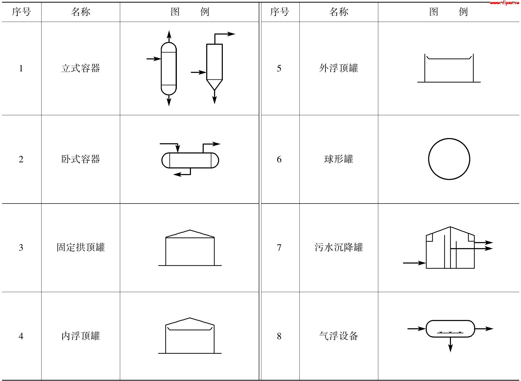 常見容器及儲罐的圖例見表3-1。