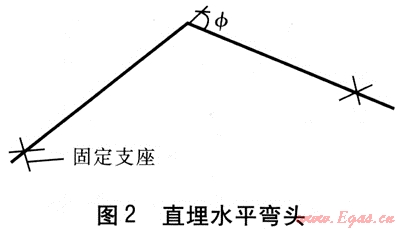 直埋水平彎頭見圖2,要求在滿足疲勞壽命和強度條件[3,4]的前提下進行優(yōu)化選型,使壁厚和曲率半徑達到最經濟。