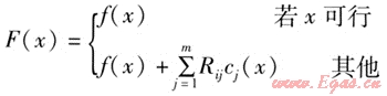 遺傳算法用于求解約束非線性最優(yōu)化問題,最常用的方法是懲罰函數(shù)法,其本質是通過懲罰不可行解,把有約束的問題轉化為無約束問題。目前常用的懲罰函數(shù)法有:靜態(tài)懲罰函數(shù)法、動態(tài)懲罰函數(shù)法、退火懲罰函數(shù)法等[6],本中采用靜態(tài)懲罰函數(shù)法[7]。這種方法對每個約束設定了三個違約水平,對每個違約水平和每個約束產生一個懲罰因子,違約水平越高,懲罰因子Rij(i=1,2,…,L;j=1,2,…,m)越大。Rij確定后,在算法的演化過程中是不變的。考慮了懲罰因子后的新適應度F(x)的表達式為:
