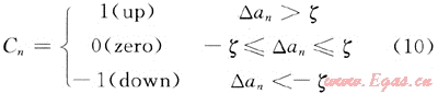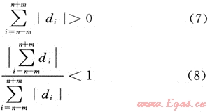 式(7)說明在第n個點(diǎn)附近存在較大變化,在滿足式(7)的同時滿足式(8)說明在該點(diǎn)附近也存在較大的反向變化,可判斷為“跳動”。