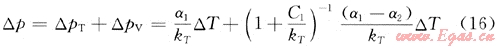 由于環(huán)空體積的變化引起的壓力變化量為: