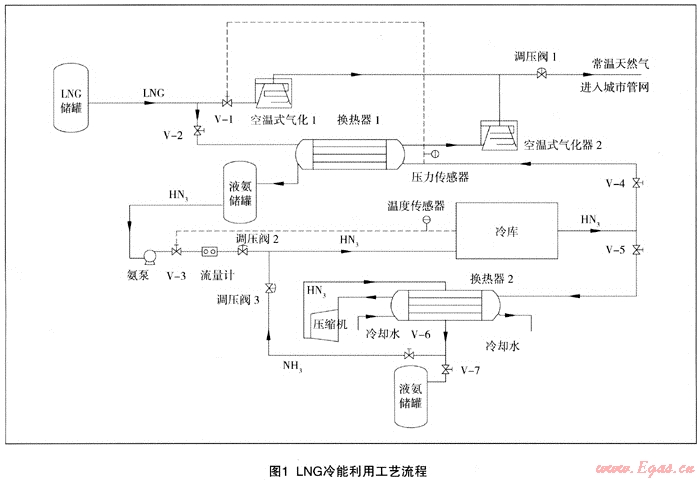 在本方案中,通過換熱器中氨氣的壓力確定進(jìn)入換熱器的LNG流量;通過冷庫溫度調(diào)節(jié)進(jìn)入冷庫的液氨量;再通過低溫液氨流量確定冷能費(fèi)用。