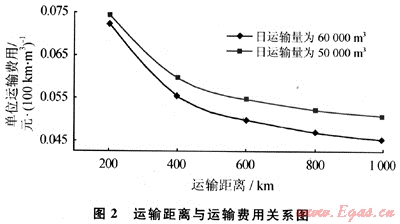 2) 運輸距離越遠,日運輸量越大,單位運輸成本越低。
