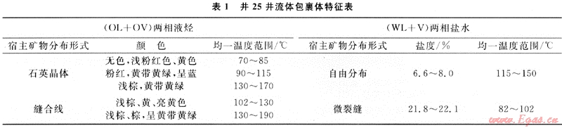 從古地溫梯度圖可以看出,井25井須家河組地層在演化過程中最高溫度為135℃,而包裹體均一溫度存在的第三個范圍,即130~155℃部分超出了須家河組的古地溫范圍。此現(xiàn)象應是由于外來深層高溫流體侵入造成的。這與前述的根據(jù)包裹體鹽度較低所推測的存在高演化油氣充注的結果一致。由此可見須家河組儲層接受了深層流體及烴源的貢獻,推測可能發(fā)生在喜山運動期,也即四川盆地普遍存在的天然氣重新分配與調整期。因此高溫流體對應這一成藏期。