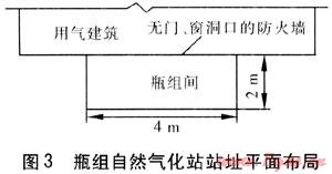 總?cè)莘e小于1m3的瓶組自然氣化站的站址平面布局見(jiàn)圖3。