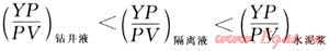 3) 隔離液的流變性應(yīng)滿足動(dòng)塑比: