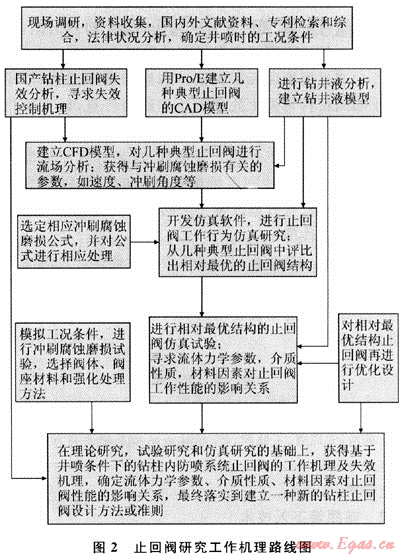 開展該項(xiàng)研究的主要目標(biāo)是將理論研究、計(jì)算機(jī)仿真研究和模擬工況的試驗(yàn)研究有機(jī)地融為一體,應(yīng)用多學(xué)科最新、最成熟的理論和技術(shù),評價(jià)現(xiàn)有的幾種內(nèi)防噴系統(tǒng)止回閥性能,通過模擬和數(shù)值分析進(jìn)一步優(yōu)化閥的結(jié)構(gòu),改善閥的性能,初步建立起止回閥設(shè)計(jì)的一種新方法,并在機(jī)理研究上有所建樹。研究工作主要包括以下內(nèi)容: