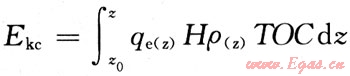 式中:Ekc為排烴強(qiáng)度,104t/km2;Z為埋深,m;Z0為排烴門限,m;qe(z)為單位質(zhì)量有機(jī)碳的排烴率,mg/g;ρ(z)為烴源巖密度,g/cm3;TOC為有機(jī)碳百分含量,%;H為烴源巖厚度,m。