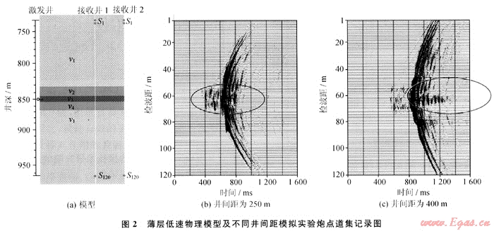 從應(yīng)用的角度看,井間距越大所研究的井間介質(zhì)橫向范圍越大,因此井距越大越好。從理論上來講,井間距越大地震波傳播的路徑越長(zhǎng),能量穿過介質(zhì)被吸收衰減得越多,對(duì)井下震源的要求也越高,實(shí)現(xiàn)起來越困難。