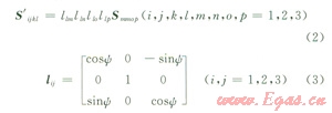 式中Smnop為斜坐標(biāo)系中的柔度矩陣,S'ijkl為水平坐標(biāo)系中的柔度矩陣,lij為方向余弦矩陣。