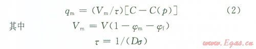 目前主用運(yùn)用蘭格繆爾等溫吸附原理來(lái)描述儲(chǔ)層氣體的吸附解吸。實(shí)驗(yàn)和理論研究表明,蘭格繆爾等溫吸附原理適用頁(yè)巖氣的吸附解吸特性,即蘭格繆爾單分子層吸附狀態(tài)方程: