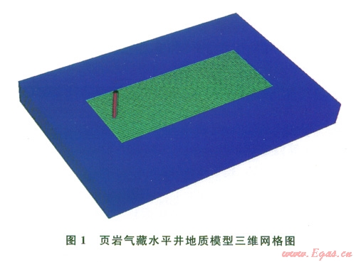頁(yè)巖儲(chǔ)層基質(zhì)滲透率極低且發(fā)育不同程度的微裂縫,整體表現(xiàn)為雙孔特征。因此,通常應(yīng)用雙孔模型對(duì)頁(yè)巖儲(chǔ)層進(jìn)行數(shù)值模擬研究。通過(guò)借鑒國(guó)外頁(yè)巖儲(chǔ)層典型參數(shù)建立了頁(yè)巖氣藏水平井雙孔地質(zhì)模型,頁(yè)巖儲(chǔ)層深度2 000 m,有效厚度30 m,孔隙度0.05,基質(zhì)滲透率0.001 mD,原始含氣飽和度為0.70,原始地層壓力20 MPa,Langmuir壓力3 MPa,Langmuir體積13 m3/m3,天然氣總地質(zhì)儲(chǔ)量5.4276×108 m3。頁(yè)巖氣藏水平井地質(zhì)模型長(zhǎng)l 210 m,寬