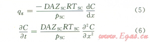 式(5)~(6)中qg表示擴(kuò)散流量,m3/s;D表示擴(kuò)散系數(shù),m2/s;A表示面積,m2;ZSC表示標(biāo)準(zhǔn)狀況下氣體壓縮因子,無(wú)量綱單位;R表示通用氣體常數(shù);TSC表示標(biāo)準(zhǔn)溫度,℃;pSC表示標(biāo)準(zhǔn)壓力,MPa;C表示摩爾濃度,kg/m3;t表示時(shí)間,s。
