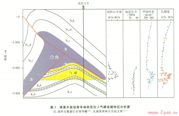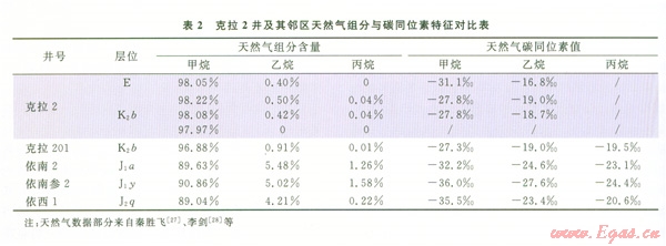 抽吸效應(yīng)的地質(zhì)表現(xiàn)主要包括:氣藏高壓-超高壓(局部氣層壓力與深層相近)、儲層孔隙度增大、天然氣干而丙烷含量稀少、碳同位素值變重、氣藏內(nèi)砂巖儲層高嶺石含量高等特征。如克拉2大氣田的天然氣儲量超過2 000×