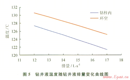 由圖5可知,當(dāng)鉆井液排量增加時,鉆井液溫度隨之降低。