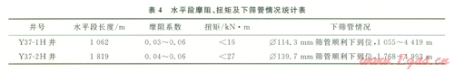 從表4中數(shù)據(jù)可以看出,現(xiàn)場(chǎng)固體和液體潤(rùn)滑劑復(fù)配使用后,潤(rùn)滑效果顯著提高,鉆井過(guò)程中,摩阻和扭矩得到有效控制,摩阻系數(shù)均在0.06以?xún)?nèi),電測(cè)及下篩管均順利。