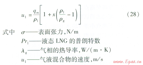 管內(nèi)LNG或氣態(tài)天然氣的對流換熱可以按照內(nèi)部強(qiáng)制對流換熱的實(shí)驗(yàn)準(zhǔn)則關(guān)聯(lián)式進(jìn)行計(jì)算。
