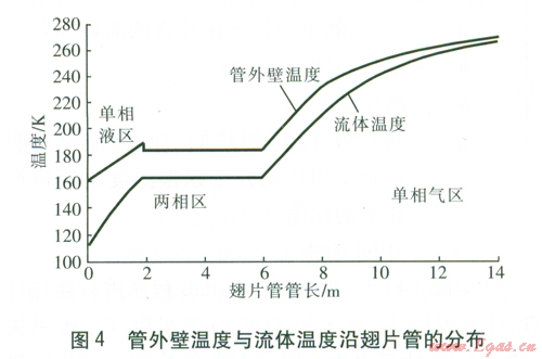由上述可以看出,以往對AAVs的研究主要集中在空氣側(cè)特性的研究,而對LNG這一特定介質(zhì)的管內(nèi)氣化過程的換熱研究較少。本文對LNG空溫式氣化器單根翅片管的換熱進(jìn)行計(jì)算,并分析管內(nèi)的相變吸熱特點(diǎn)。