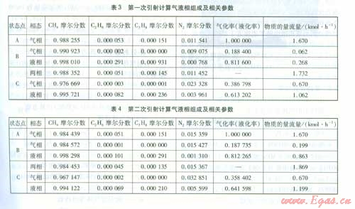 氣相0.670 kmoL/h與原料氣組成的混合氣體即為第二次引射的引射氣體,經(jīng)計(jì)算得引射氣體組成及相關(guān)參數(shù)見表4狀態(tài)點(diǎn)A。