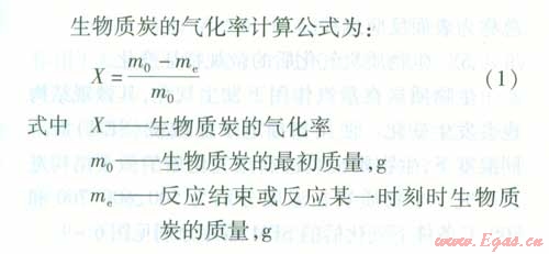 與煤焦和石油的氣化相比,針對生物質(zhì)炭與蒸汽和C02的氣化研究還比較少。通過對國內(nèi)外相關(guān)文獻(xiàn)的查閱可知,盡管有學(xué)者對生物質(zhì)炭在蒸汽和C02條件下的氣化特性進(jìn)行了一些研究,但是研究不夠深入,且主要針對以產(chǎn)氣為目的的生物質(zhì)炭完全氣化過程,而對于生物質(zhì)炭作為焦油催化劑時(shí)伴隨發(fā)生的氣化反應(yīng)則沒有涉及[5-8]。筆者進(jìn)行了生物質(zhì)炭的氣化實(shí)驗(yàn),研究內(nèi)容包括生物質(zhì)炭的氣化率和氣化氣組成變化等,為研究生物質(zhì)炭在催化重整過程中同時(shí)發(fā)生的生物質(zhì)炭氣化反應(yīng)奠定了基礎(chǔ)。