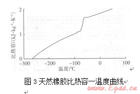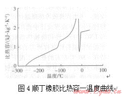 丁苯橡膠是丁二烯和苯乙烯的無規(guī)共聚物,其玻璃化溫度和比熱容隨丁二烯和苯乙烯配比的不同發(fā)生變化。以苯乙烯質(zhì)量分數(shù)為25.5%的丁苯橡膠為例,其玻璃化溫度為一57℃,比熱容與溫度的關(guān)系為: