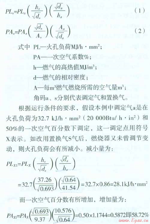 因此,用一種燃氣置換另一種燃氣時,用來預(yù)測燃具性能的公式應(yīng)包括下列因素: