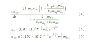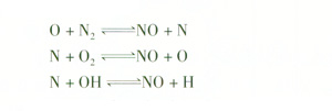 在燃燒過程中有3種氮氧化物生成:瞬時(shí)N0x、燃料N0x和熱力N0x。對于天然氣這種清潔燃料的燃燒,熱力N0x生成是主要的。熱力N0x生成有3個(gè)主要反應(yīng):