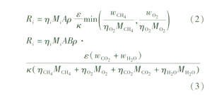 式中i——組分,CH4、02、H2O或C02
