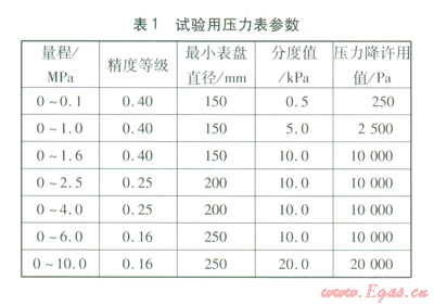 本文針對(duì)各種試驗(yàn)用壓力表量程,選取不同壓力降許用值,見表l。這樣規(guī)定的壓力降是讀數(shù)誤差,實(shí)際上相當(dāng)于不允許泄漏。