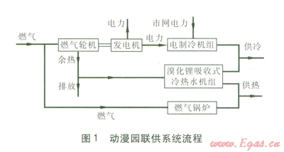 燃氣冷熱電聯供系統(tǒng)(以下簡稱聯供系統(tǒng))是以天然氣為一次能源,產生電和可用冷熱能的能源系統(tǒng)[1]。利用燃氣輪機、內燃機等發(fā)電機組與溴化鋰吸收式冷熱水機組進行優(yōu)化組合,可實現終端能源的梯級利用和高效轉換,避免遠距離輸電損失,提高能源利用效率,降低能耗。[2-12]。