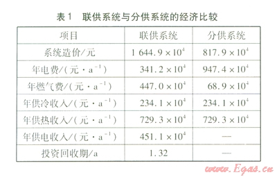 由表l可知,雖然聯(lián)供系統(tǒng)的造價高于分供系統(tǒng),但由于聯(lián)供系統(tǒng)年供電收入較高,使得在較短的時間內(nèi),就將多出的造價收回。