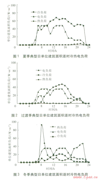由圖l~3可知,夏季、過渡季、冬季的電負荷具有相同的特性。隨著上班時間的來臨,開始增長,在中午休息時,由于部分人員外出,出現(xiàn)一個小低谷,然后恢復(fù)到正常水平。隨著下班時間的來臨,開始下降,直到加班人員離開辦公樓。夏季電負荷的整體水平高于過渡季、冬季。