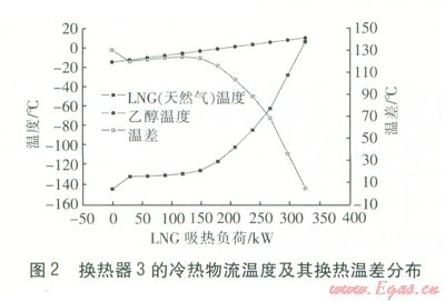 由圖2可知,當(dāng)-145℃的LNG與乙醇進(jìn)行熱交換時(shí),LNG氣化升溫至