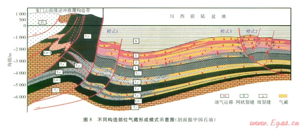 圖5是不同構(gòu)造部位氣藏形成模式示意圖。
