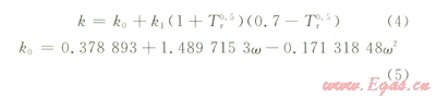 式中Tr=T/Tc,Tc為臨界溫度,K;Tr為絕對(duì)溫度和臨界溫度的比值;k可以表示為: