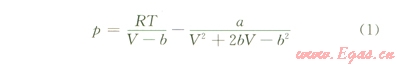 式中p為體系壓力,Pa;V為摩爾體積, m3;T為絕對(duì)溫度,K;R為氣體常數(shù),無(wú)量綱;a、b可表示為: