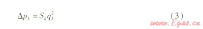 k條支路阻力Δpk的計算式為: