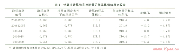 4)采用流量計(jì)直接計(jì)量樣品體積比采用壓縮因子計(jì)算樣品體積低2.2%~/4.8%,因此樣品體積不應(yīng)采用流量計(jì)直接計(jì)量,而應(yīng)采用計(jì)算法。
