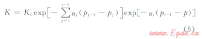 K=K0exp[-a(p0-p)] (1)
